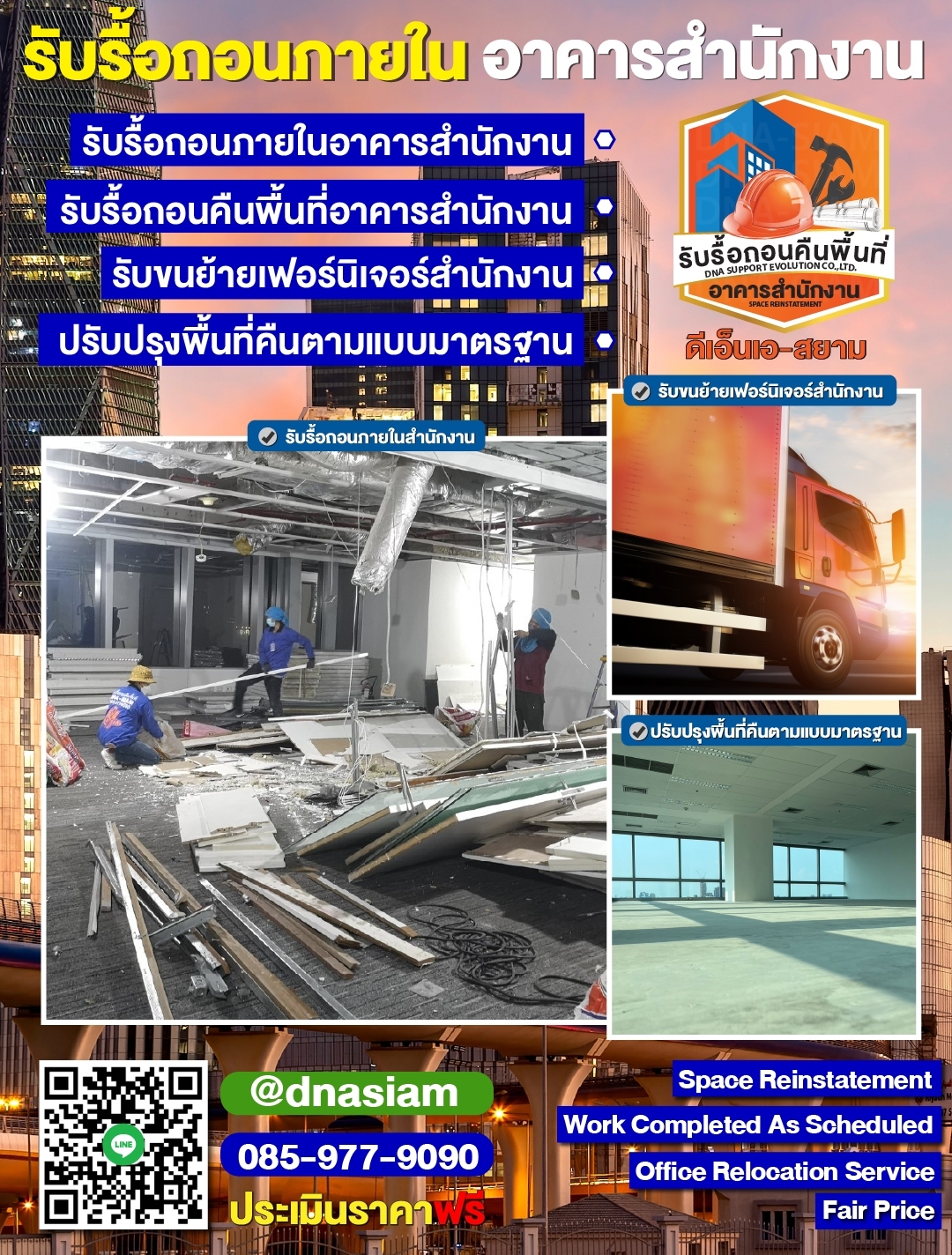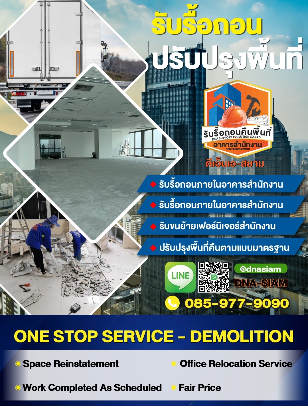 DNA-SIAM เชี่ยวชาญงานรื้อถอนคืนพื้นที่สำนักงานโดยเฉพาะ ให้บริการอย่างมืออาชีพ รวดเร็ว ปลอดภัย และครบจบในที่เดียว